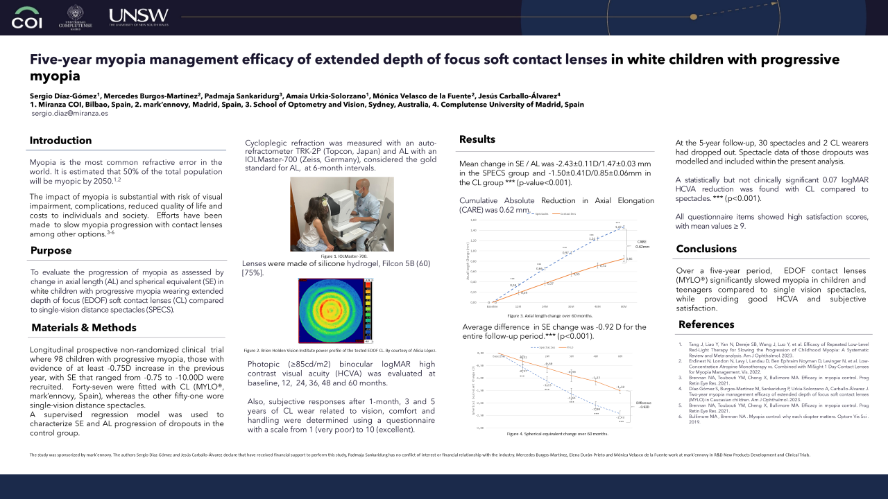 Five-year myopia management efficacy of extended depth of focus soft contact lenses in white children with progressing myopia